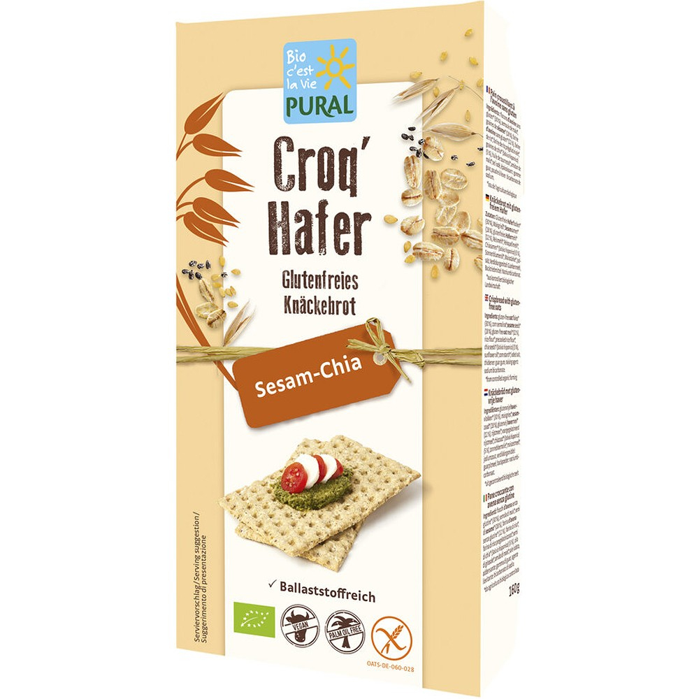 Descoperiti aceasta gustare crocanta obtinuta doar din ingrediente ce provin din agricultura ecologica si este ideala pentru toata familia. Fulgii de ovaz, fara gluten, semintele de susan aromate si cele de chia dau gustarii textura ei crocante si gustul specific. Acest sortiment de crackers de la Pural este produs in urma proces delicat si cu repsect fata de mediul inconjurator.