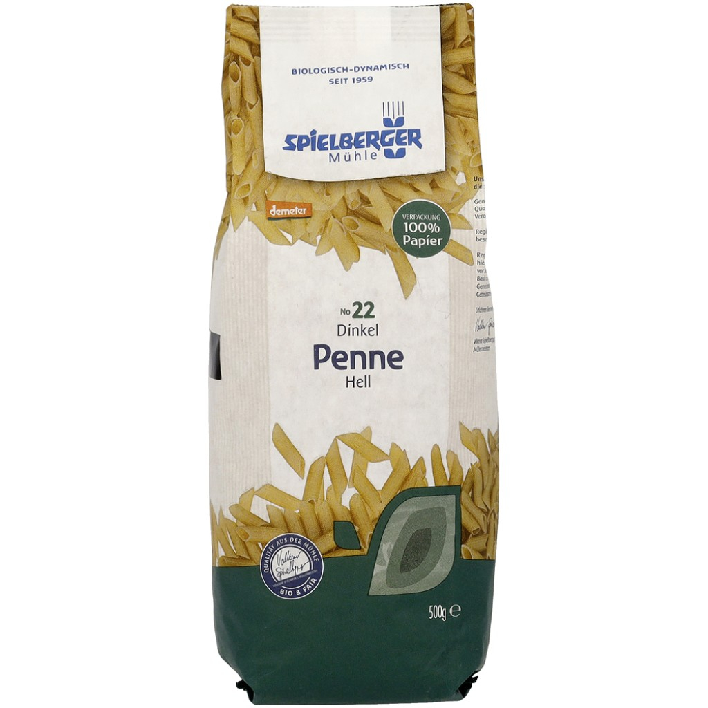 Aceste penne de la Spielberger au un gust placut si asemanator de nuci, fiind obtinute din spelta, tip 812, cu provinienta doar din agricultura. ecologica. Forma acestora le permite sa se imbine armonios cu sosul ales. Pastele din spelta se preteaza in a fi folosite in diferite preparate clasice sau salate moderne.